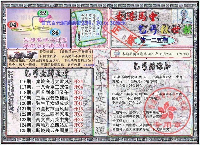 本站所有资料开奖日21:00永久锁定,锁定后无法再编辑,请各位高手务必在开奖日21:00之前更新好资料